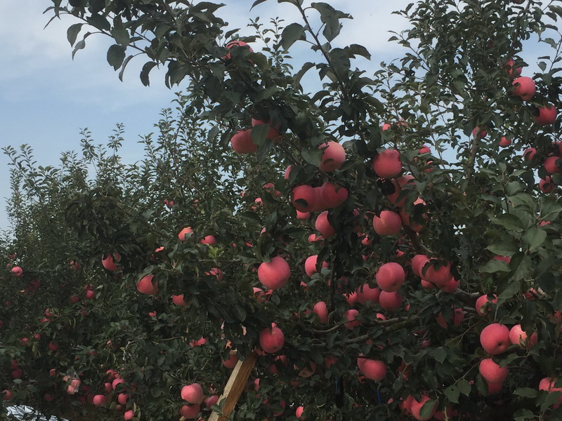 文登区文登营镇马家岭村苹果种植园(苹果树150多亩、年产鲜苹果60多万斤),位于胶东半岛丘陵地带,气候属暖温带,空气湿润,光照充足,昼夜温差大,极利于糖份的有效积累,具备栽培苹果及利于苹果生长的各种自然条件。出产的红富士等品种的苹果个大、果形正,色泽鲜艳江润,外表光滑细腻,口味酸甜适口,铁、锌、锰、钙等人体有益的徽量元素含量丰富。在种植过程中,果农利用先进环保的技术措施,生产出消费者看得舒心、吃的放心的优质苹果。